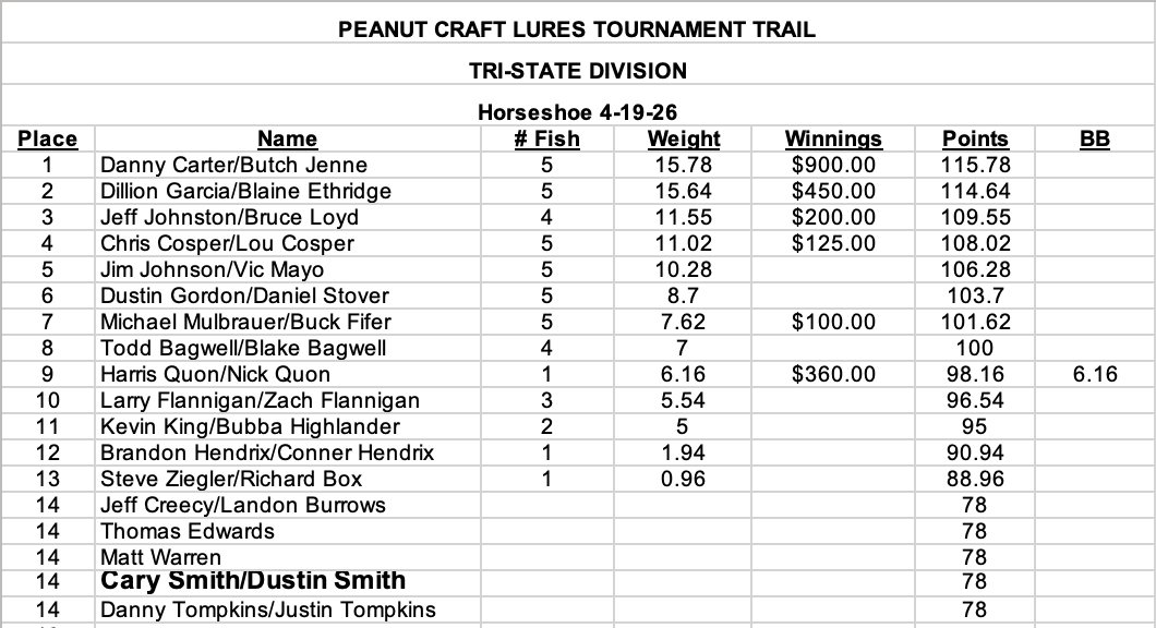 - Feb 28: Pickwick (State Line) [VIEW RESULTS]